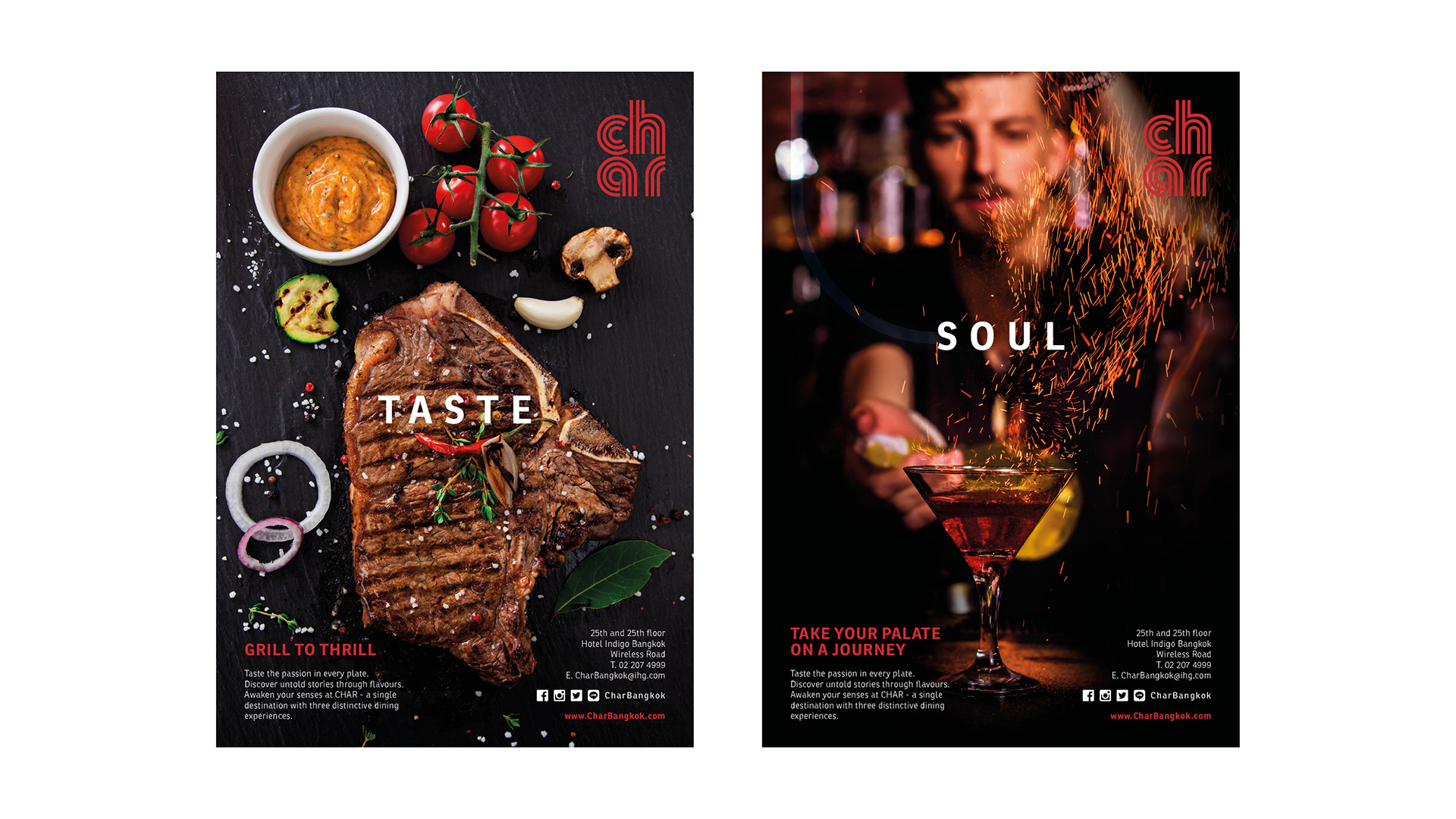 Char branding restaurant from IHG group start with explore collaterals brand to advertisement campaign.