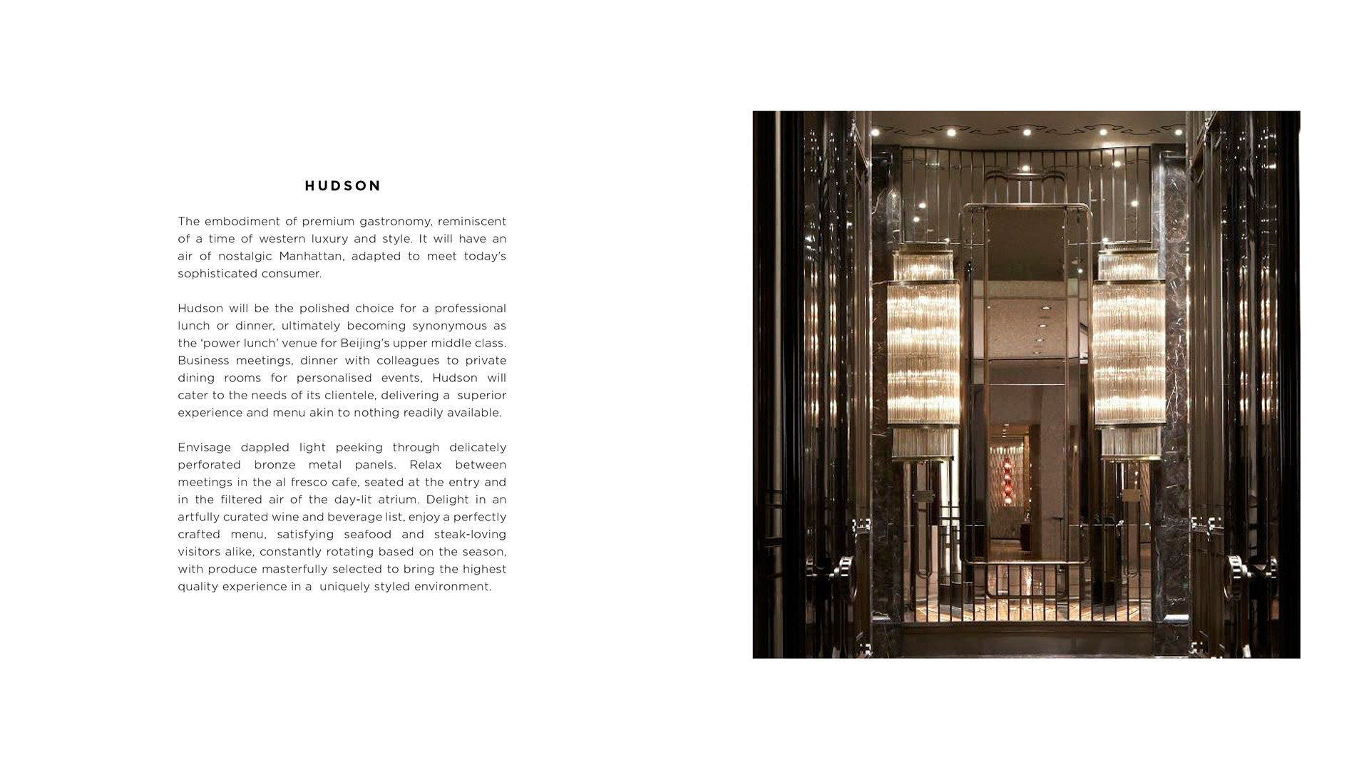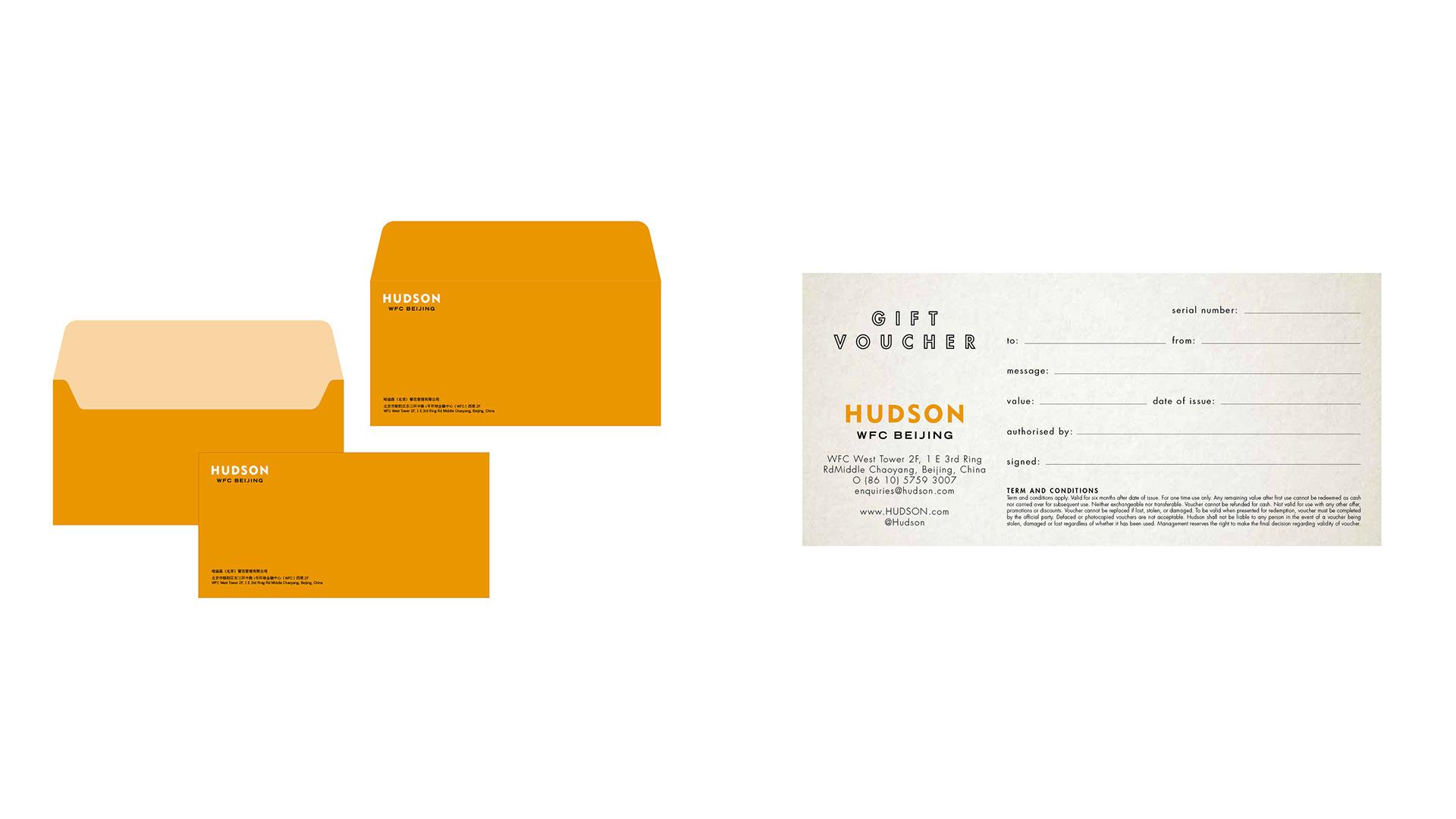 Hudson in Beijing the branding services for officer in building, start design with logo, graphic brand collaterals and signage.